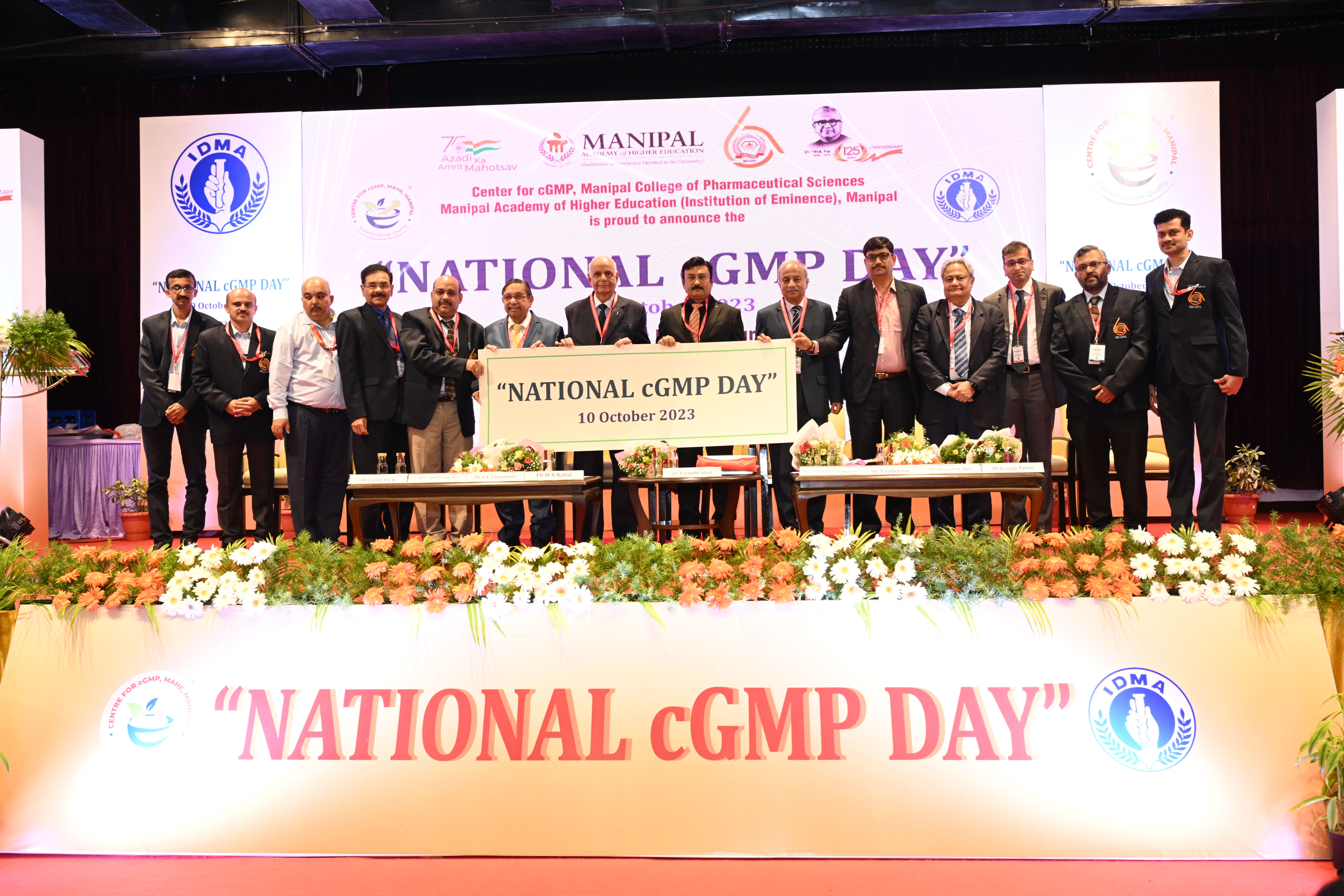 The Centre for cGMP at Manipal College of Pharmaceutical Sciences (MCOPS), Manipal Academy of Higher Education (MAHE), organized the first-ever "National Current Good Manufacturing Practices Day" or "National cGMP Day", on October 10, 2023, at Manipal. This momentous occasion coincides with the Diamond Jubilee of MCOPS and the 125th Birth Anniversary of its visionary founder, Dr. TMA Pai, Padmashree Awardee. This was jointly organized along with IDMA (Indian Drug Manufacturers Association).