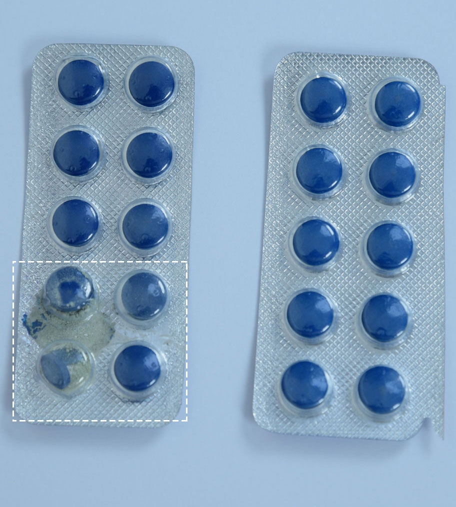 Defects: Two empty pockets found within an intact blister pocket of 4s pack